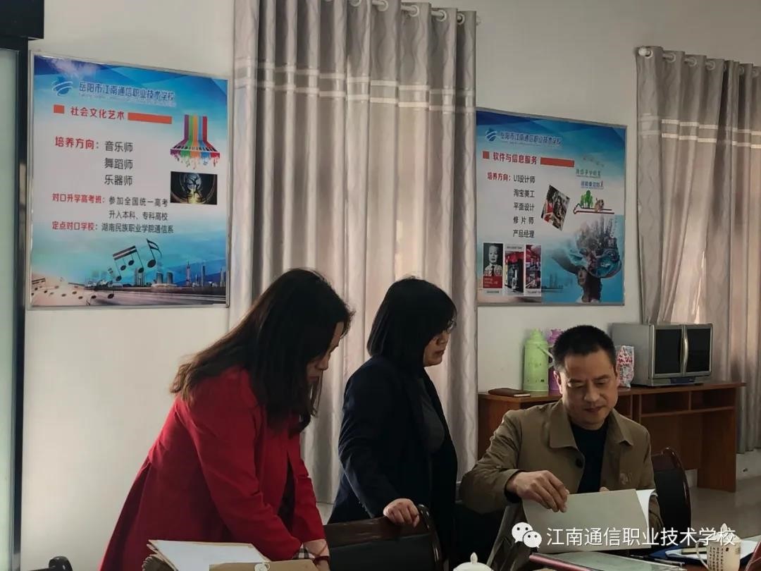 3月22日上午,岳陽市教體局領(lǐng)導(dǎo)李像謙科長(zhǎng)一行蒞臨我校進(jìn)行2021年春季教學(xué)視導(dǎo)工作。視導(dǎo)組成員就常規(guī)教育教學(xué)工作專業(yè)辦學(xué)條件,專業(yè)教學(xué)文件,專業(yè)教學(xué)團(tuán)隊(duì)、實(shí)習(xí)與就業(yè)情況、專業(yè)建設(shè)實(shí)效等六個(gè)方面全面進(jìn)行了檢查視導(dǎo)。 肯定我們工作做的細(xì)致、扎實(shí),有實(shí)效,專業(yè)有特色,學(xué)生有所成。同時(shí)交待了下階段要做好的六件事: